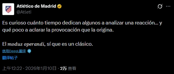 官方回应!马竞官方:对挑衅和起因避而不谈,屡见不鲜的老套路