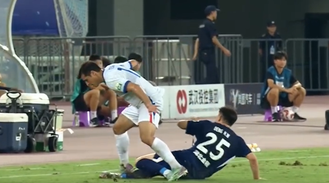 比赛上半场第40分钟,特谢拉和邓涵文在争抢皮球的时候,发生肢体接触。邓涵文铲球的一瞬间,特谢拉的右脚刚好踩踏在他的小腿上。当时担任主裁判的邢琦,回看VAR,表示不构成红牌,仅向特谢拉出示黄牌。